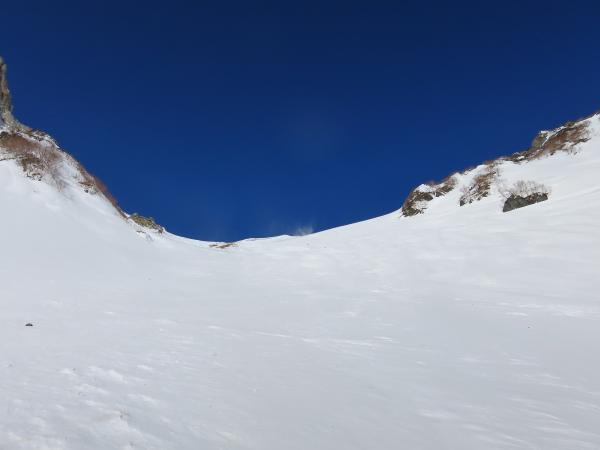 標高2100m付近から斜度が出てくるのでスキーアイゼン必須。