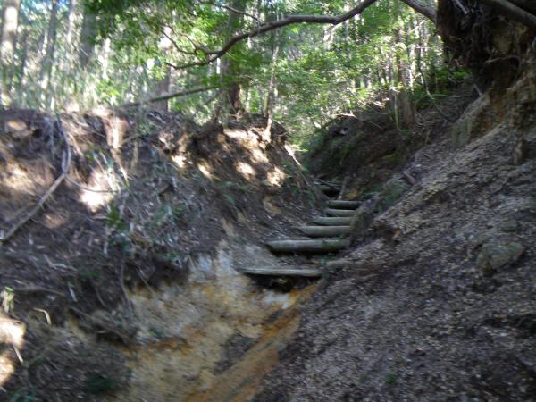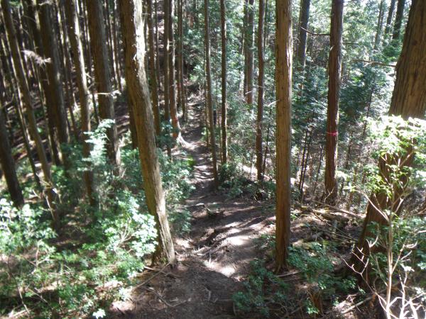 ⑤頂上から戒場山は方面は最初が急坂で、それからは樹林帯のアップダウンです