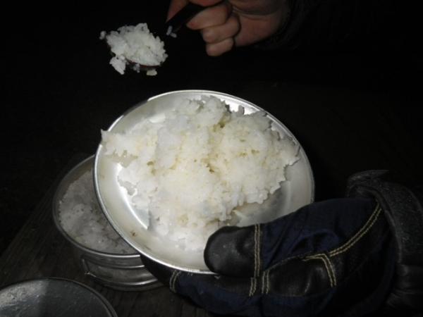 夕方から、河原で集めた薪に火をおこして焚火。米から炊いたごはんがとっても美味しかった~!