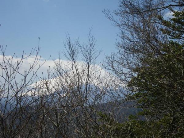 畦ヶ丸の山頂からは、木々の間から富士山が!