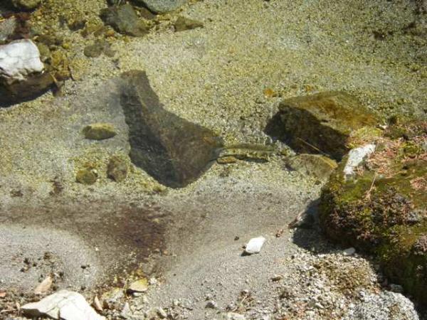 西丹沢の沢は、白っぽい岩質からか、川底まで覗けるので、目を凝らすとこんなシーンに出会えるかも。