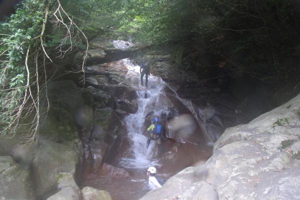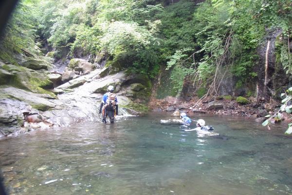 前半の滝、滑が楽しいです。美しい滝つぼで泳ぐのも気持ちよいです。