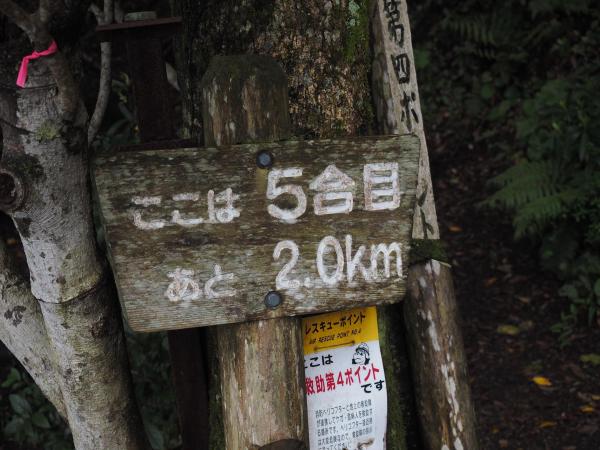 - 登山口2合目==(210分)==山頂==(120分)==登山口2合目