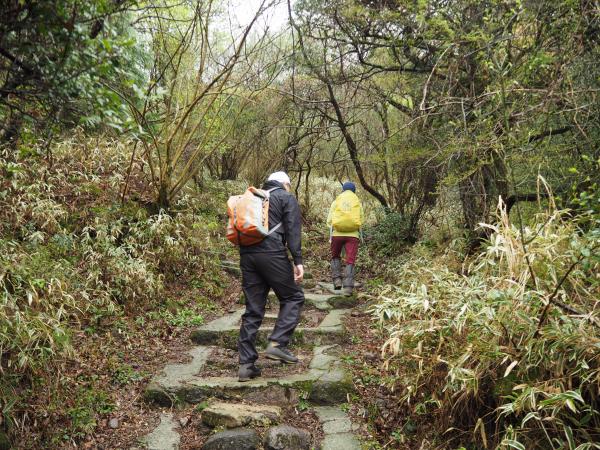 国見岳と普賢岳の分岐から紅葉茶屋への下りは登山道や階段がが崩れているので歩きにくいです。