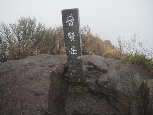 分岐にもどり最後は普賢岳へ。普賢岳への登りは少し急な岩の多い登り。山頂直下には祠があります。いよいよ山頂到着!!!周りは何も見えません!!本当なら平成新山が目の前にどどーーんと見えるはずなのですが次回のお楽しみということで。