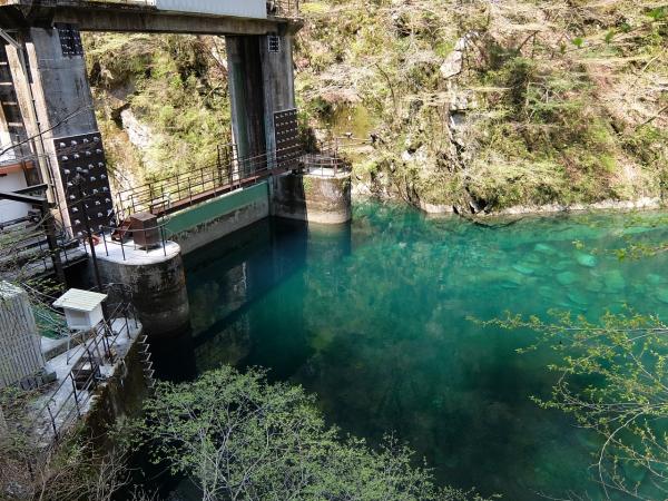 小さいダムもあり、エメラルドグリーンの水がキラキラ光っていました。