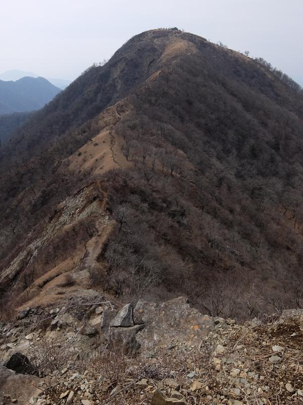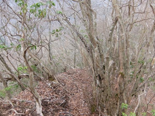 尾根の取りつきからかなりの登り、道が荒れています。走れません。