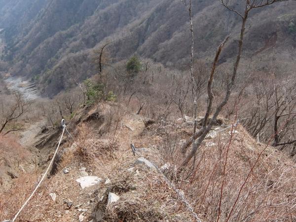 下部は上部と同じように藪になりますが、上部ほど斜度がなく比較的視界が開けます。