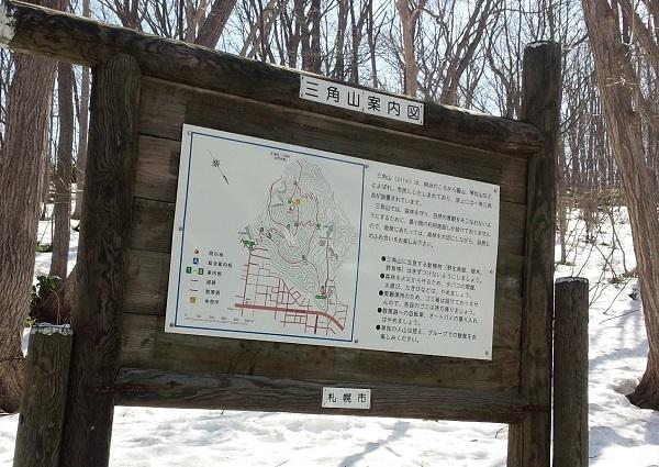 - 山の手登山口→(30分)→作業道出合→(20分)→哲学の道→(20分)→東屋→(10分)→三角山山頂→(10分)→東屋→(20分)→哲学の道→(20分)→作業道出合→(20分)→山の手登山口