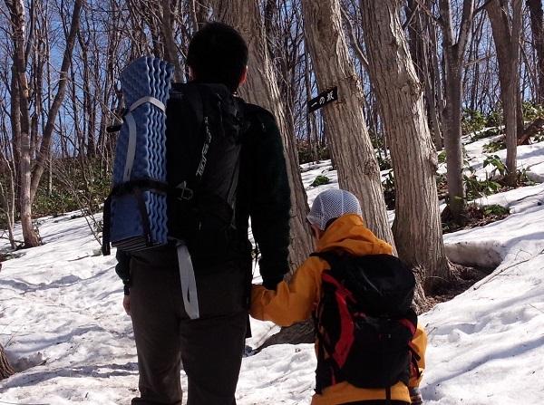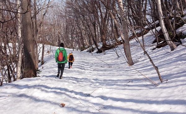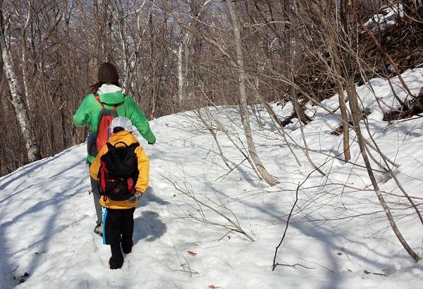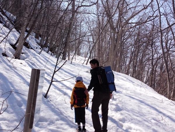 - まだまだ雪に覆われていたのでゆっくりと子供のペースに合わせて歩きました。通常のコースタイムの倍の時間をかけています。