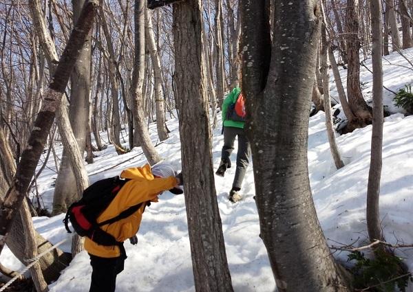 子供にとっては初めての雪山なので無理のないコース、コースタイムで歩きました。ゆっくり歩くことで、キツツキやリスを見つけたり、ウサギやイヌの足跡などでアニマルトラックの話ができたり、楽しく歩くことができました。下山後は風邪をひかないようにしっかり汗を拭いて着替えをしました。