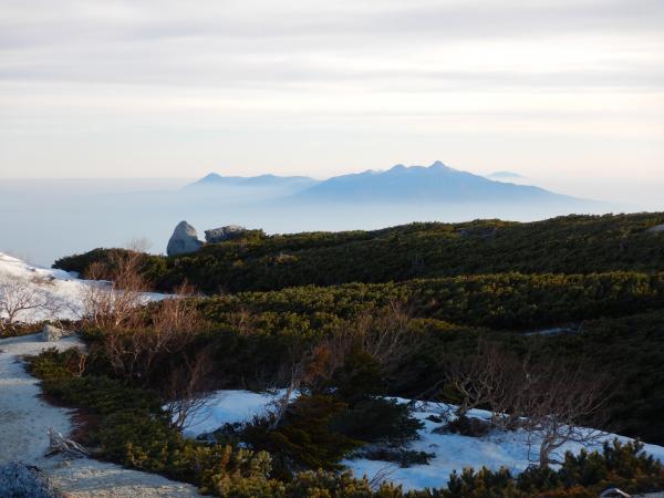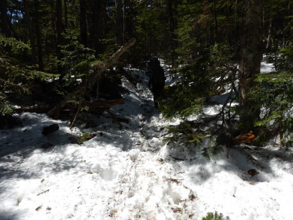 - 杖立峠から少し先に進むと雪が出てきます。薬師岳小屋までは雪が残っており、危険個所も数カ所あったので、アイゼンは必要です。稜線は観音岳と地蔵岳の間に雪が残っていました。