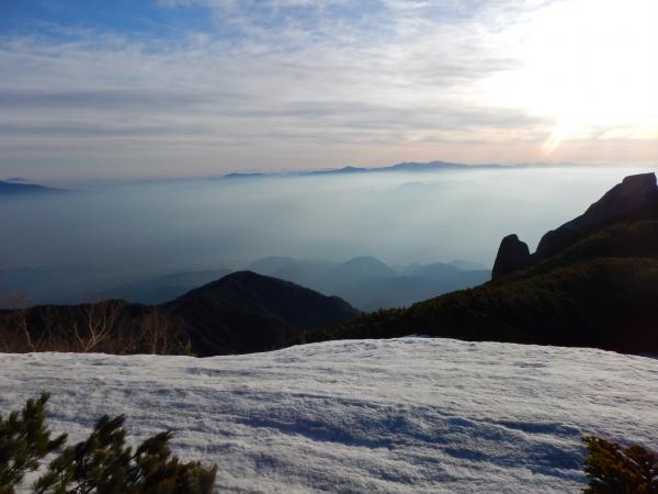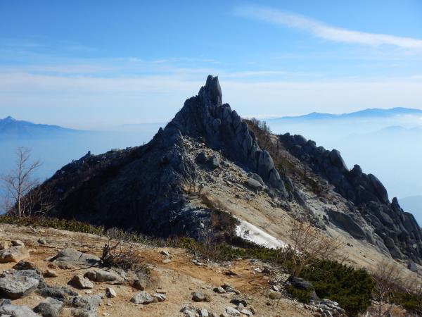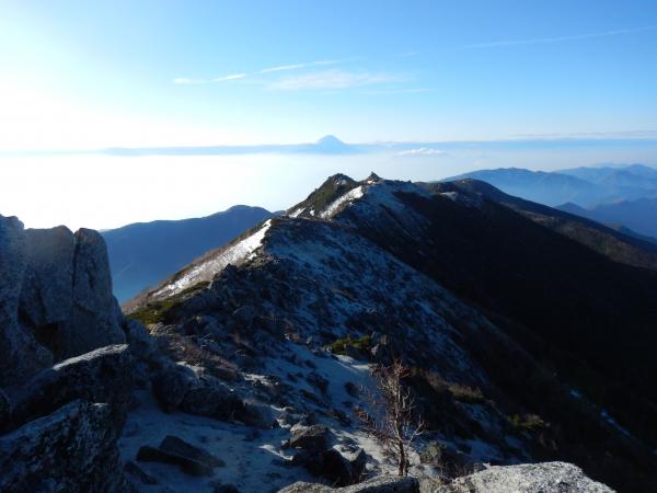 で登るとご褒美と言わんばかりに富士山、仙丈ヶ岳、甲斐駒ケ岳、八ヶ岳、北アルプスなどが惜しみな