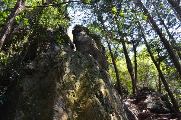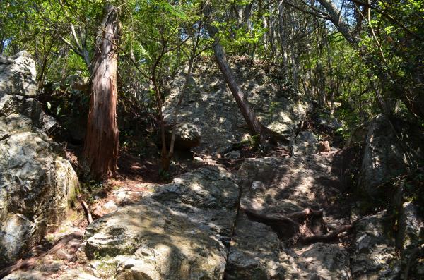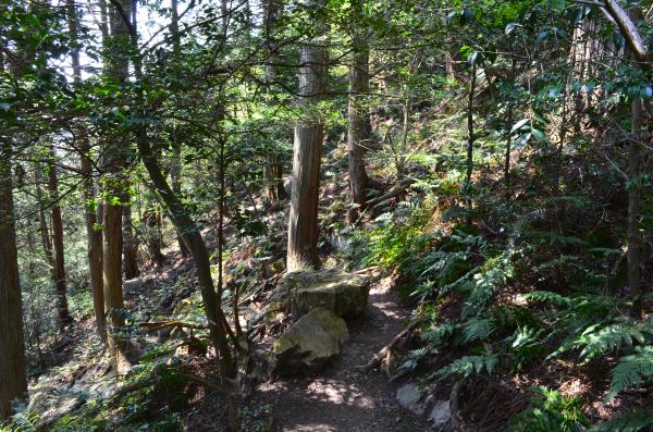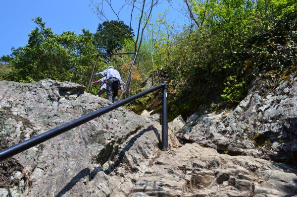 表道の登り初めは緩やかですが、山頂が近づくにつれ、岩場が出てきて、急登となります。