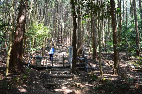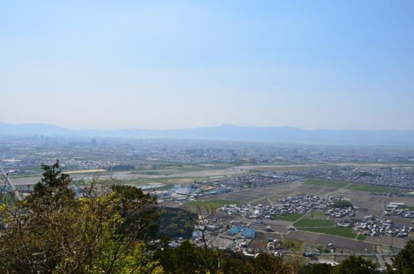 山頂は気に囲まれていて景色は見えませんが、山頂から少し下ったところは展望が開けており、琵琶湖方面の眺めがよいです。