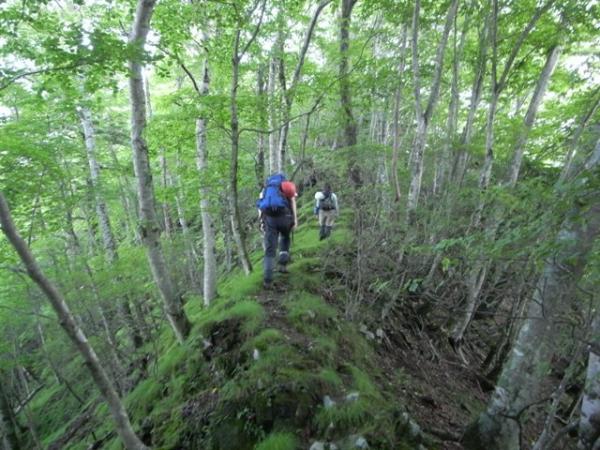 1583m峰 正面の稜から行ける人もいるようですが裏側から登ります。