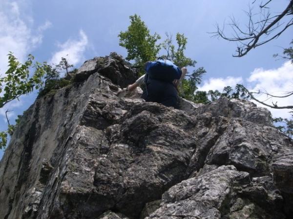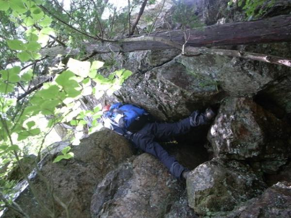 赤岩岳 正面壁直登も可能だが確保が必要なので北側のルンゼから上がります