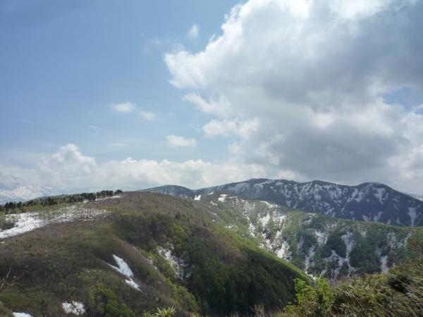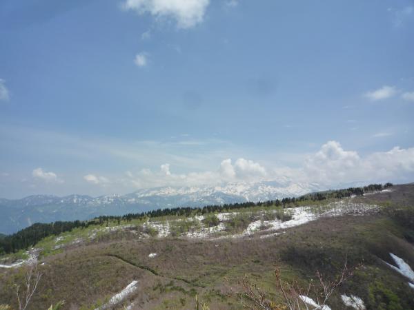 頂上からは正面に白山が望め、とても良い景色です。少し、進んだこつぶり山からはさらに近く白山を臨めるので、ぜひお昼ご飯はこちらをお勧めします。