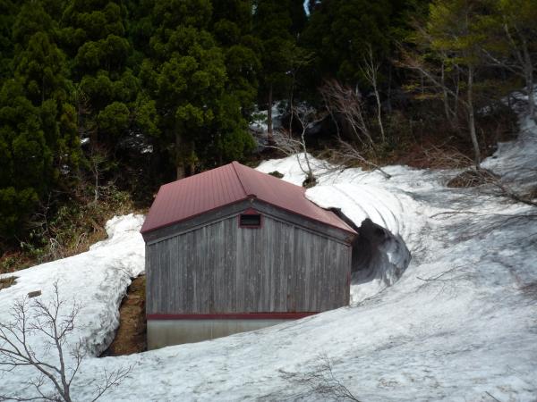 水芭蕉群生地は立派な避難小屋のすぐそばにあります。