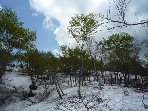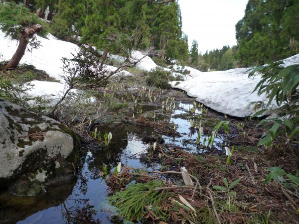 思っていたより残雪がありましたが、雪の水分が多いので、登山靴をしかり蹴り込めば特に問題なく歩けました。