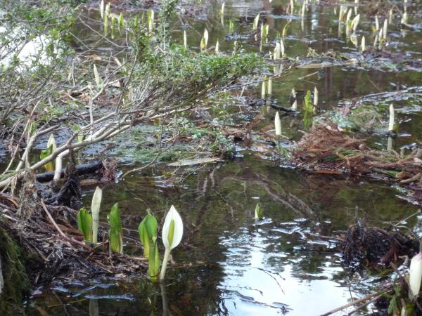 登山口手前の『東山いこいの森』で満開の水芭蕉も見れました。