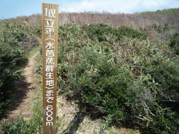 - 登山口駐車場(70分)⇒取立山頂上(30分)⇒水芭蕉群生地(10分)⇒こつぶり山頂上(90分)登山口駐車場