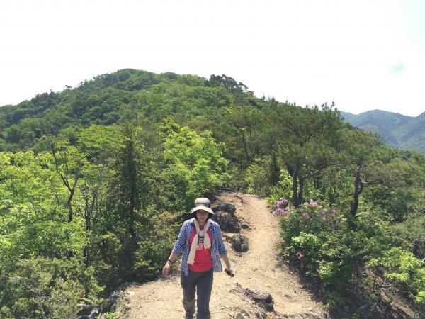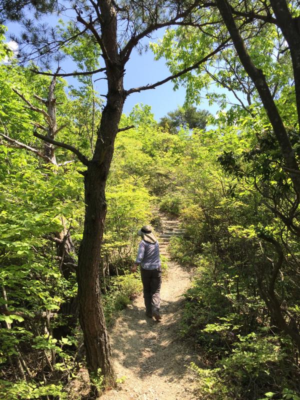 なんの変哲も無い登山道ですが、尾根道に上がると、三田方面が空が広く見え、爽快な風景が広がります。