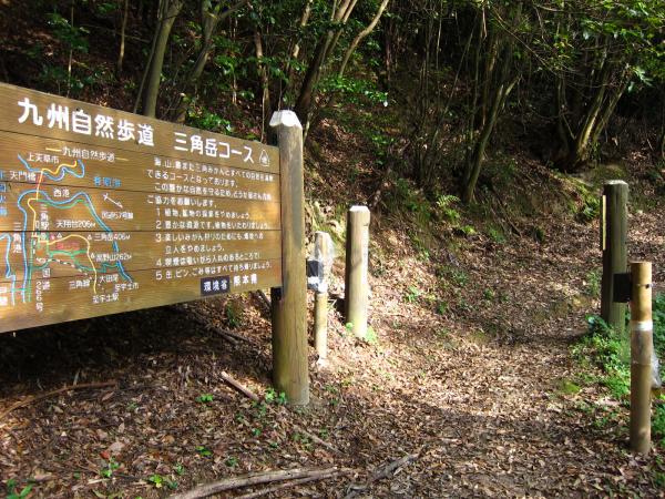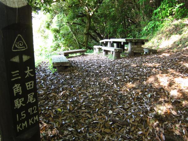 - 三角駅→(20分)→三角駅登山口→(30分)→天翔台分岐→(10分)→天翔台→(60分)→三角岳[1302m]→(60分)→三角駅