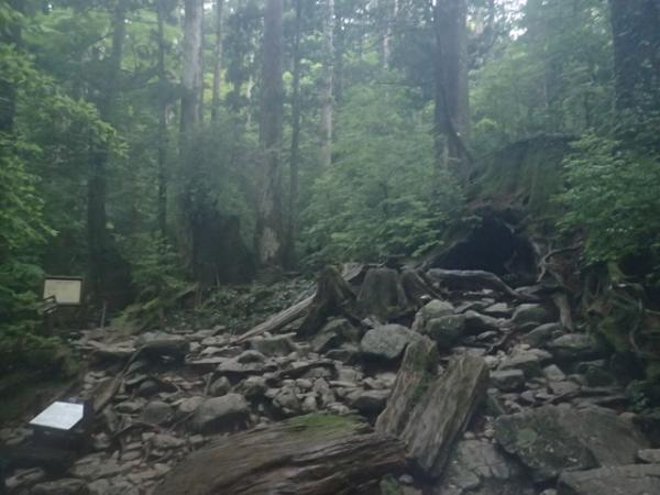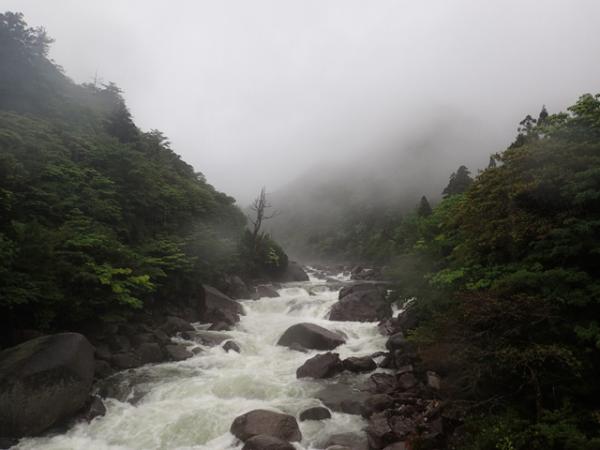 登山道も何回か水の流れている川沿いを歩きますが無事渡れましたが、二日目は白谷雲水峡までのバスが止まりました。おそらく白谷雲水峡から白谷山荘までの道も増水で通れなかったと思います。