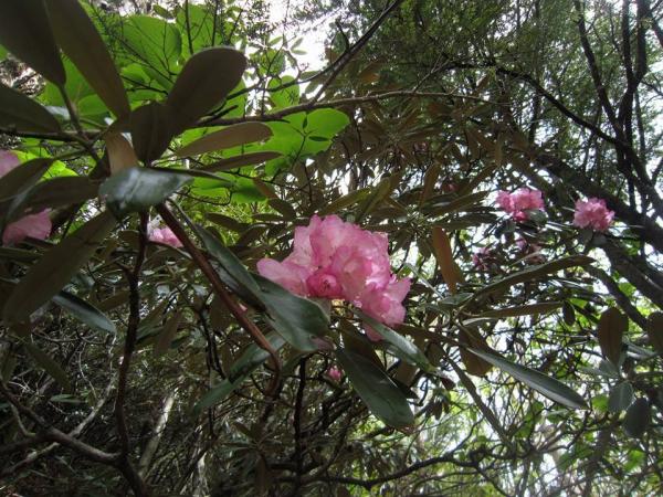 西股沢沿いの道路歩き、一時間ほどで登山口に到着、整備された登山道はアズマシャクナゲの森