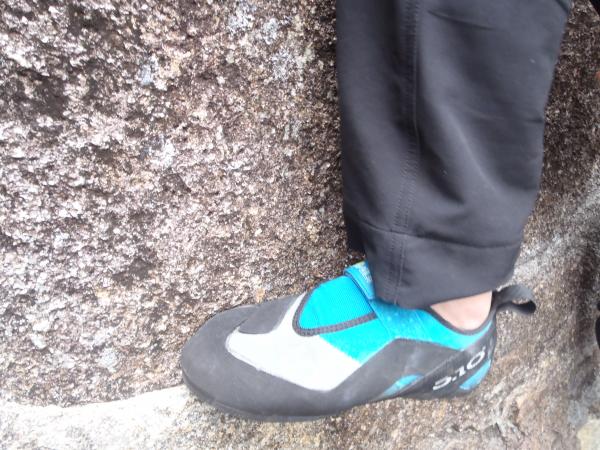左カンテを使いながら登ります。カンテには足はしっかり置けますが、右足のスタンスがなかなか決まりません。スメアでゆっくり足を確認しながらUP。途中立ち上がれる場所があるが足元は不安定。かなりへばりつきが必要です。真ん中から先はクラックを使って登るのがまた怖かった!!