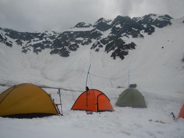 例年より雪の量は少なかったですが、本谷橋より上はしっかりとした雪山装備が必要でした。