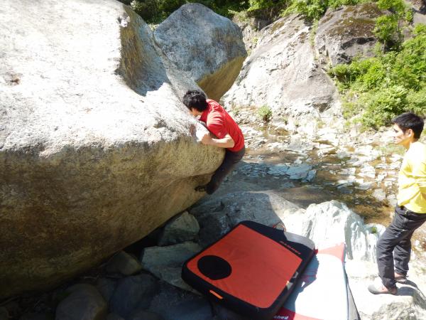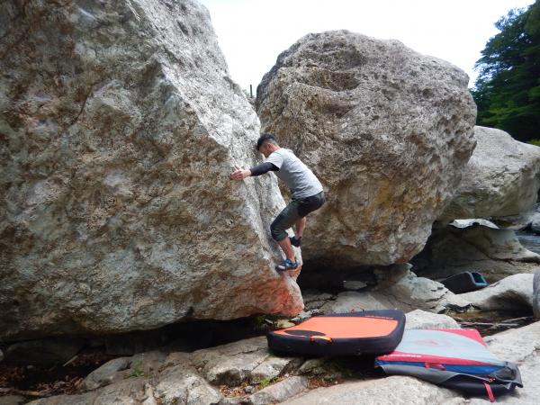早めに下山できたので、お昼からは塩原でボルダリング。河原で石を登ったり、ひなたぼっこしたり、昼寝