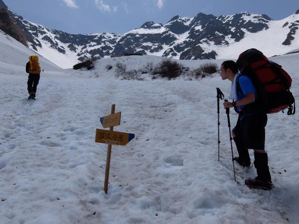 沢上の雪面が薄くなっている場所もありますので、踏み抜かないよう注意して下さい。
