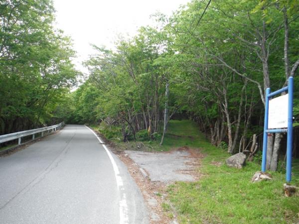 アンテナ側の牧柵沿いに明瞭な踏み跡が林道まで伸びています。