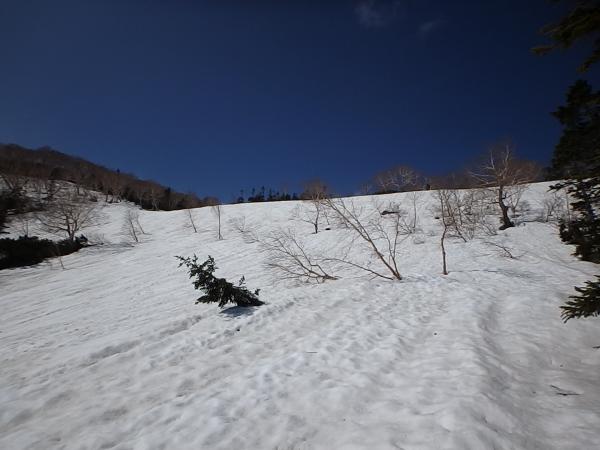 下部は縦に深い溝が入り軽い筋トレでしたが、上部は溝も深くなく快適なコーンスノーでした。