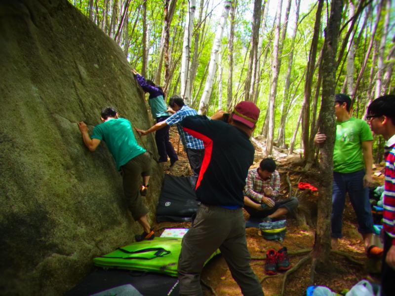 好日メンバーで集まり、二日間の小川山麓、廻り目平にてクライミング。