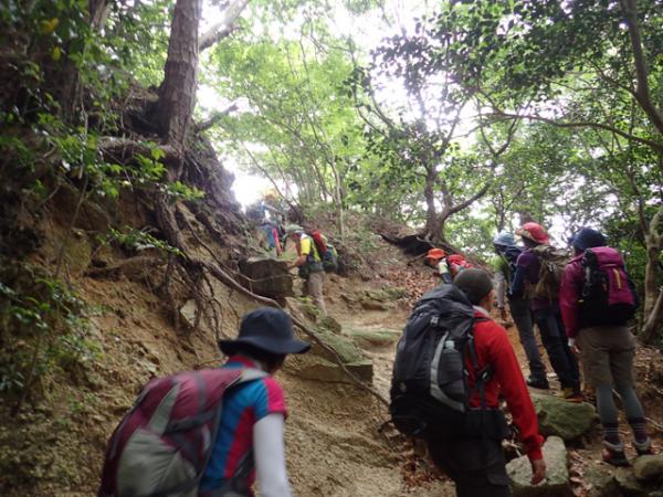急な坂もあったり、細い登山道、木の階段や鎖場など単調な登山道ではないので、登山者を飽きさせない登山が出来ます。