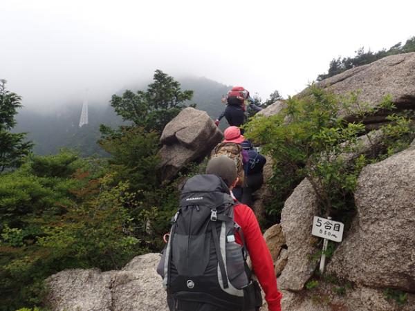 鎖場やハシゴが連続しており、気が抜けない状態が続きます。