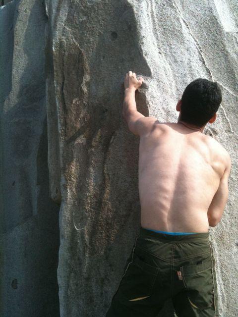 夏は暑いですが、海や渓谷のボルダーで水遊びと組み合わせると楽しい!って事で、今回は以前から行ってみたかった丹後半島の経ヶ岬でボルダリングです。5mクラスのフィンガークラックがたくさんあり、色々楽しめそうですが、上部では安易に落ちれません。日差しがまともに照りつけるので、本来のシーズンは秋以降がよさそうです。