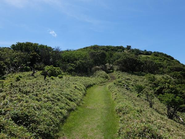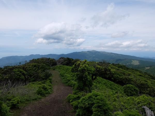 背丈ほどの木々の間を縫うようについている道を走り、稜線上へ。