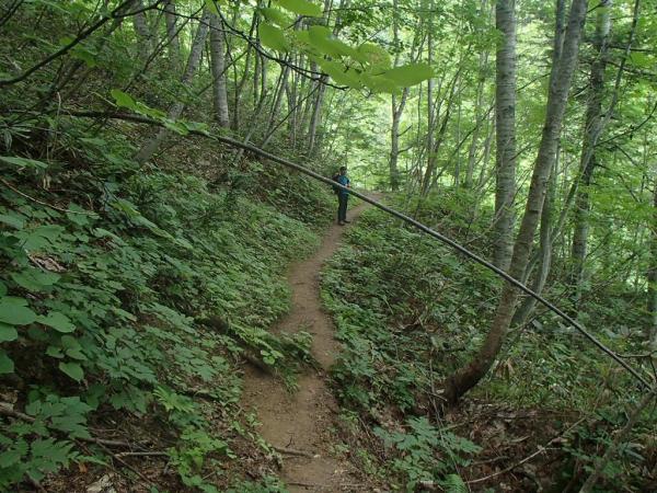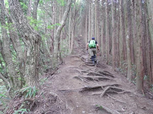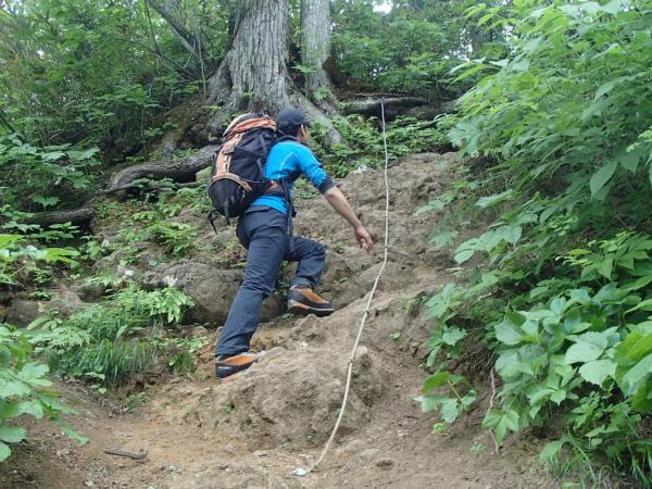 登山口までは林道を2キロ程。登山口からは割と急な登りとなります。キビシイところには固定ロープがあり、全体的には登りやすいです。