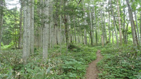 登り始めからこの日は残念ながら曇でガスも濃く、その全容を見ることはできませんでしたが、アプローチの手軽さ、登りやすさからもおすすめしたい山の一つです。ちなみに烏帽子岳への縦走路は荒れているようなのでご注意を。