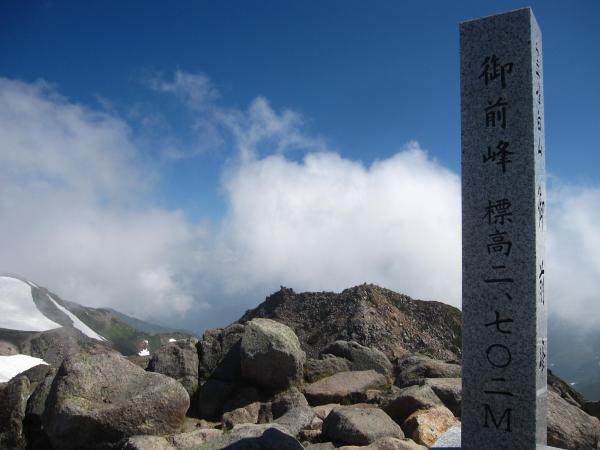 5時半スタートで涼しかったことが良かったのか、当初の予定より意外にも早く御前峰に到着でき、山頂から剣ヶ峰を眺めるおじ様と話が弾み、お池めぐりを案内していただけることとなりました。