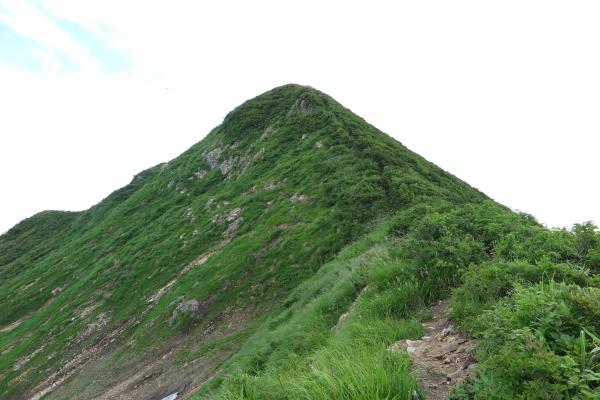 祝瓶山は端正な三角錐で、東側は急峻で荒々しく東北のマッターホルンと呼ばれています。山形の人にはとても親しまれている山ですが、この日すれ違った登山者はたった一人だけ。駐車場に車がたくさんありましたが、ほとんど釣り客のようでした。暑くてバテバテでしたが、稜線から見えていた朝日連峰の雄大な眺めは文句なしの絶景でした。