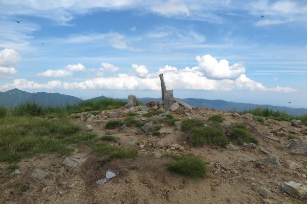 以東岳へ行く予定が道を間違え時間をロスしてしまったので、予定を変更して以前から登ってみたかった祝瓶山に行くことにしました。この日は地上も30℃越えの猛暑。無風で湿度が高く、ペースが全く上がらないまま頂上に辿り着き、下った頃にはすっかり疲れ切ってしまいました。