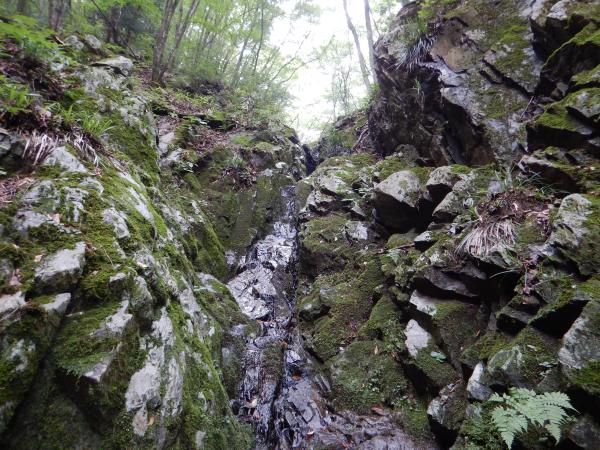 正解のルートだと最後にルンゼ状の小滝が出てきて、藪漕ぎなしで三国峠に出ます。