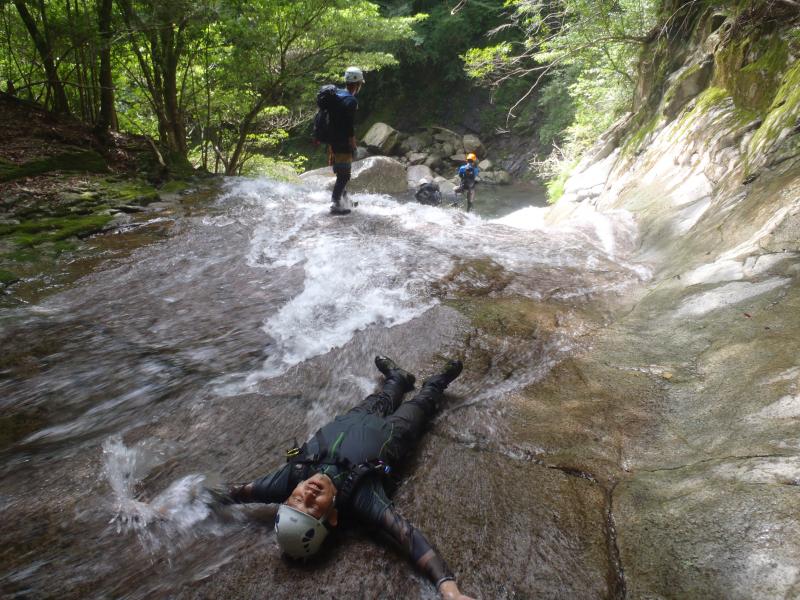 - 栂ノ平橋P ⇒15分⇒ 2段20mナメ滝 ⇒120分⇒ ヤケベ嵓 ⇒15分⇒ 300mナメ(ここで終了) ⇒90分⇒ 栂ノ平橋P