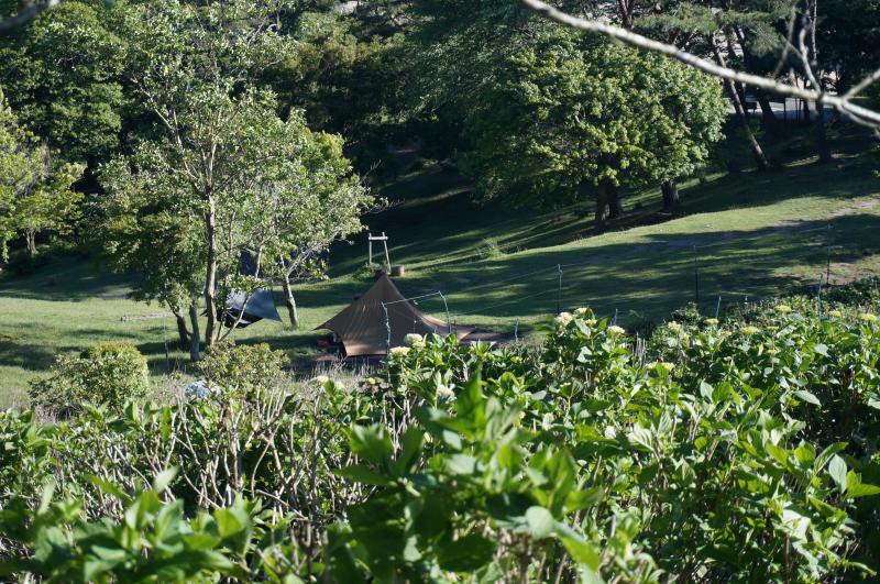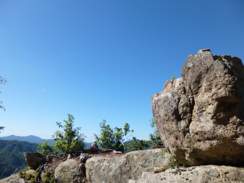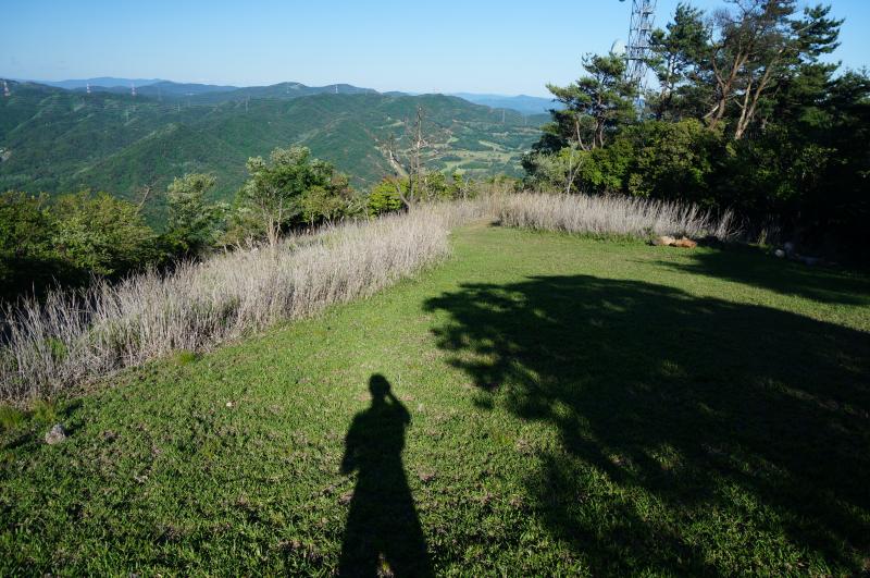 トレイルランニングで“下った”山ですが、「秋晴れの日」にのんびりトレッキングをしたいような山です。奇岩に腰を下ろし、持ってきたコンロでランチを作って、篠山の集落を眺めながら優雅に食べるという…。正直に言って、夏のトレランは熱中症の危険がありおすすめしづらいですねー((+_+)) しかし、この山は山頂まで車で行けますし、色々な岩を眺めながら「下る」というちょっと変わった登山が楽しめます。もちろん下る以上、次に登ってこなければなりませんが…(^_^;) しかも山頂は「無料のキャンプ場」、「猪名川天文台」(※営業日注意、毎週木・金・土・日・祝日営業)があり、土日は家族連れやデーキャンパーで賑わうこともあるそうです。この日も平日でしたが、タープでデイキャンプを楽しむ方がいらっしゃいました。