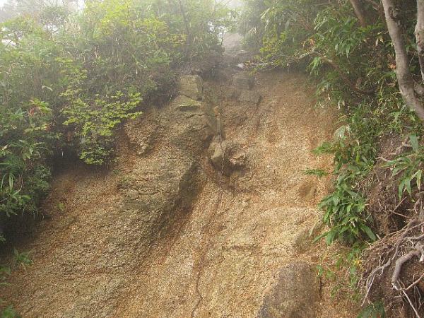 - 【中道】這い上がるように進む道です。登山地図に危険マークがありますが、手がかり足がかりがしっかりしているので特に問題はないと思います。